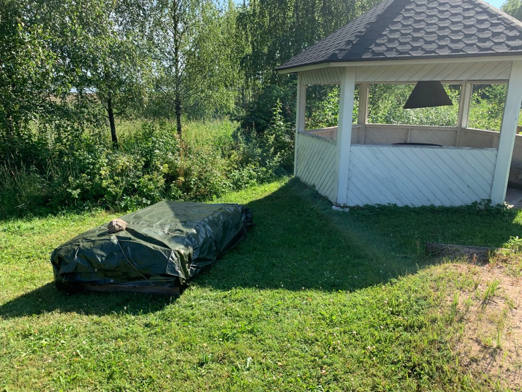 Live-hankkeen kautta / EU-rahoituksen tuella hommaamamme aidan tarvikelähetys on saapunut juuri pelipaikoille. Pressun alla, grillikatoksen vieressä. Vaikka into onkin jo monella kova, niin annetaan tarvikkeiden olla vielä hetki aloillaan.
