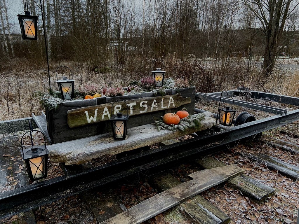 Wartsalan kyläyhdistys on taas laittanut perinteisen jouluvalaistuksen työväentalon pihan lipputankoon sekä kynttilälyhtyjä kylän raitille.