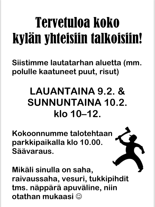 Tervetuloa talkoilemaan ja mukaan toimintaan 👍
